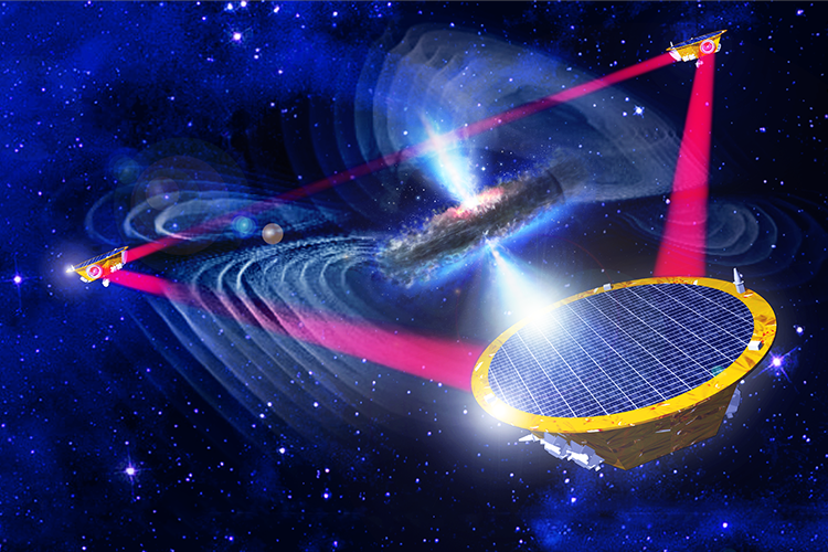 Um diese Wellen zu messen, besteht LISA aus drei Raumsonden, die tief im Weltraum ein gleichseitiges Dreieck bilden und 2,5 Millionen Kilometer voneinander entfernt sind. Die Gravitationswellen dehnen und stauchen die Raumzeit und verursachen kleinste Abstandsänderungen zwischen den LISA-Sonden (weniger als der Durchmesser eines Atoms). Jede Bewegung von Testmassen, die innerhalb der drei Raumsonden frei fallen, wenn eine Gravitationswelle vorbeizieht, kann von den empfindlichen Instrumenten der Raumsonden erfasst werden. LISA wird dies mit Hilfe von Laserstrahlen tun, die kontinuierlich zwischen den Satelliten hin- und herübertragen werden und dabei den Abstand zwischen den einzelnen Testmassen interferometrisch messen.