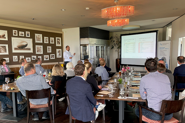 25 Mitglieder und Partner aus der Luft- und Raumfahrt fanden im Zeppelin-Hangar Restaurant in Friedrichshafen zusammen. Benedikt Otte, Geschäftsführer der WFB, eröffnete den Abend und betonte, wie wichtig Netzwerkveranstaltungen für Geschäftsbeziehungen in diesen turbulenten Zeiten sind. Thomas Grossmann, Projektleiter & Clustermanager, präsentierte im Anschluss die Neuigkeiten aus dem Cluster und gab einen Ausblick über die nächsten Aktivitäten und Veranstaltungen. Darauf folgte ein spannender Vortrag mit anschließender Diskussion zum Thema „VUCA-Resilienz“. Der Referent Dr. Ulrich Hutschek zeigte an einigen Praxisbeispielen auf, wie Unternehmen durch neue Impulse und Denkweisen Umbrüche in der Branche bewältigen und mitgestalten können.