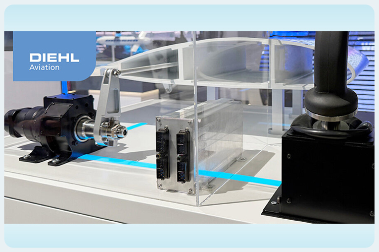 Auf der diesjährigen Paris Air Show stellt Diehl Aviation gemeinsam mit WITTENSTEIN motion control einen vollständig elektrischen Flight Control Demonstrator vor. Das System zeigt eine durchgängig integrierte Steuerkette – von der Eingabe durch den Piloten bis zur Bewegung der Steuerfläche – und verzichtet dabei vollständig auf hydraulische Komponenten, was das System weniger komplex macht.